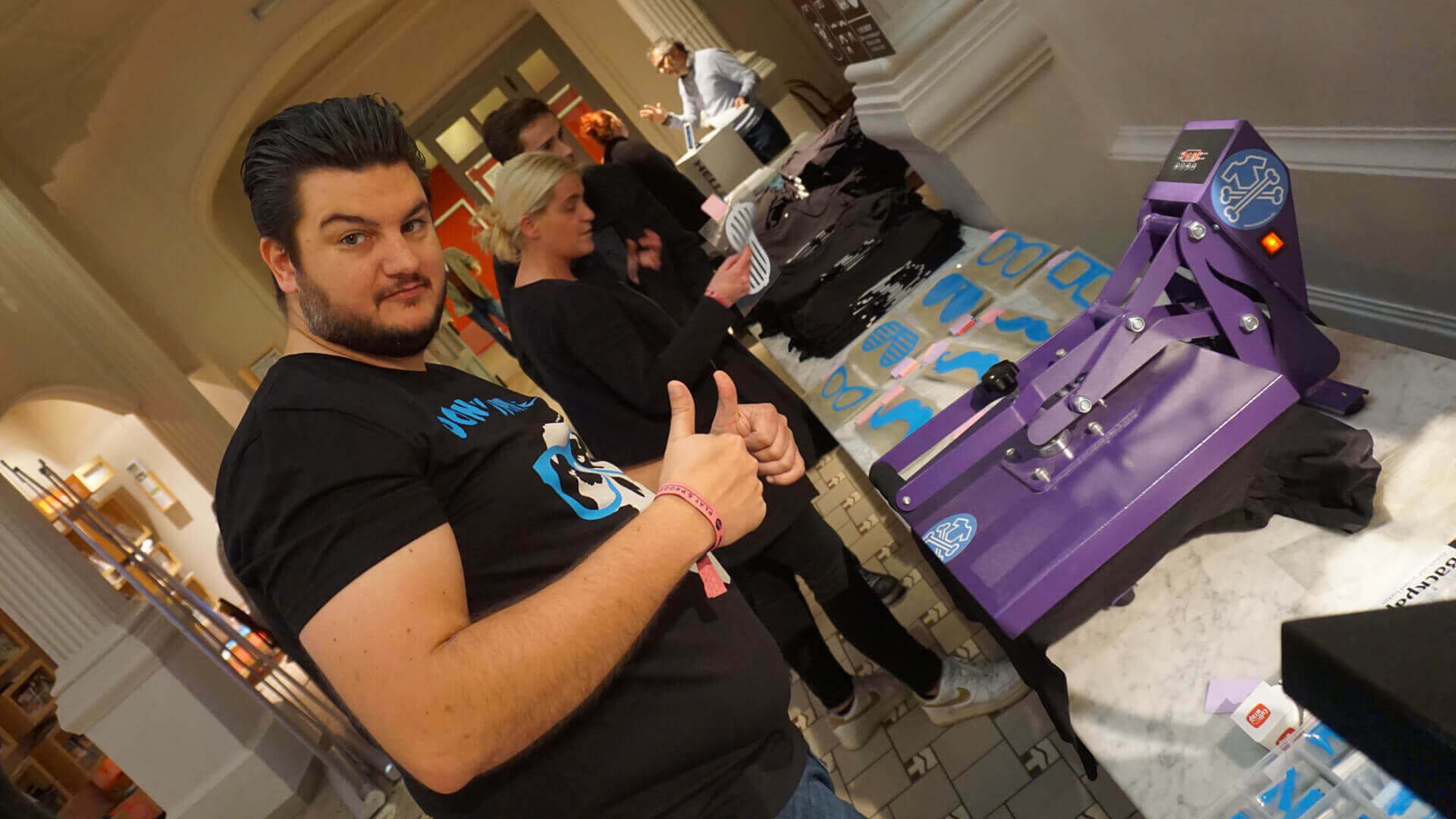 Tegenwoordig is het steeds gebruikelijker geworden: dj's en producers met hun eigen merchandise. Maar dat was niet altijd het geval. Terwijl dit fenomeen volledig geïntegreerd is in andere muziekgenres zoals rock, metal en punk, was dat voor dj's en producers niet altijd vanzelfsprekend. Tijdens deze merkactivatie wilden we elke bezoeker een uniek T-shirt bezorgen met hun eigen artiestennaam.