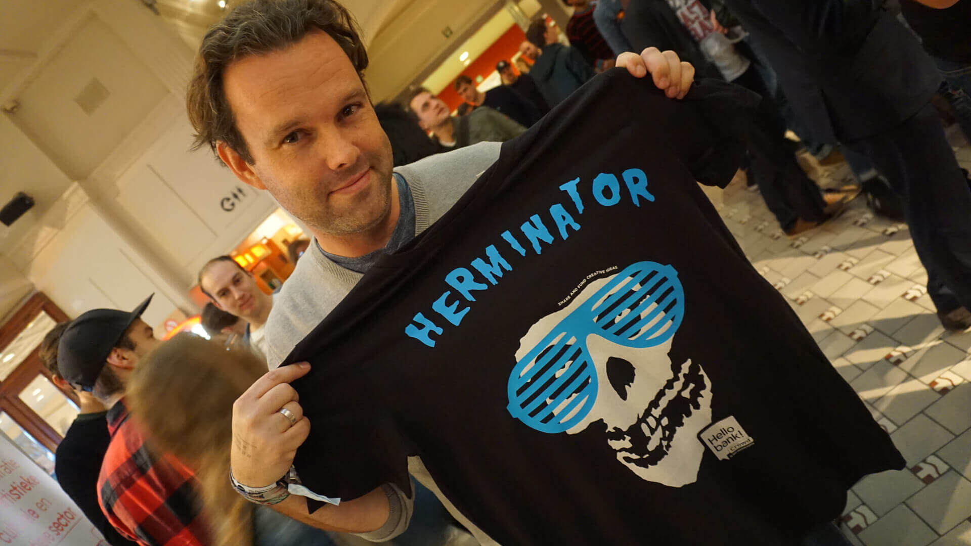Als basis voor het ontwerp kozen we het iconische schedel-T-shirt van The Misfits, de punkband rond Glenn Danzig. De 'look and feel' van dit bandshirt diende als inspiratie. Tijdens het evenement hebben we deze T-shirts gepersonaliseerd voor elke dj/producer door hun eigen artiestennaam toe te voegen. De schedel kreeg een make-over met verschillende brillen en snorren.