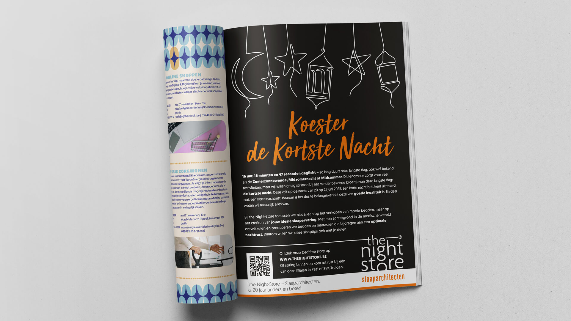 Onder de noemer ‘Bedgeheimen’ ontwikkelden we samen Het Grote Slaapboek: een naslagwerk dat de essentie van een goede nachtrust blootlegt. Geen gladde brochure vol foto’s van bedden, maar een inhoudelijk sterk en theoretisch onderbouwd boek dat lezers stap voor stap meeneemt naar het ultieme slaapmoment. Waar concurrenten folders hebben die vooral producten etaleren, brengt dit boek echte kennis en inspiratie, precies datgene waarmee The Night Store het verschil maakt.